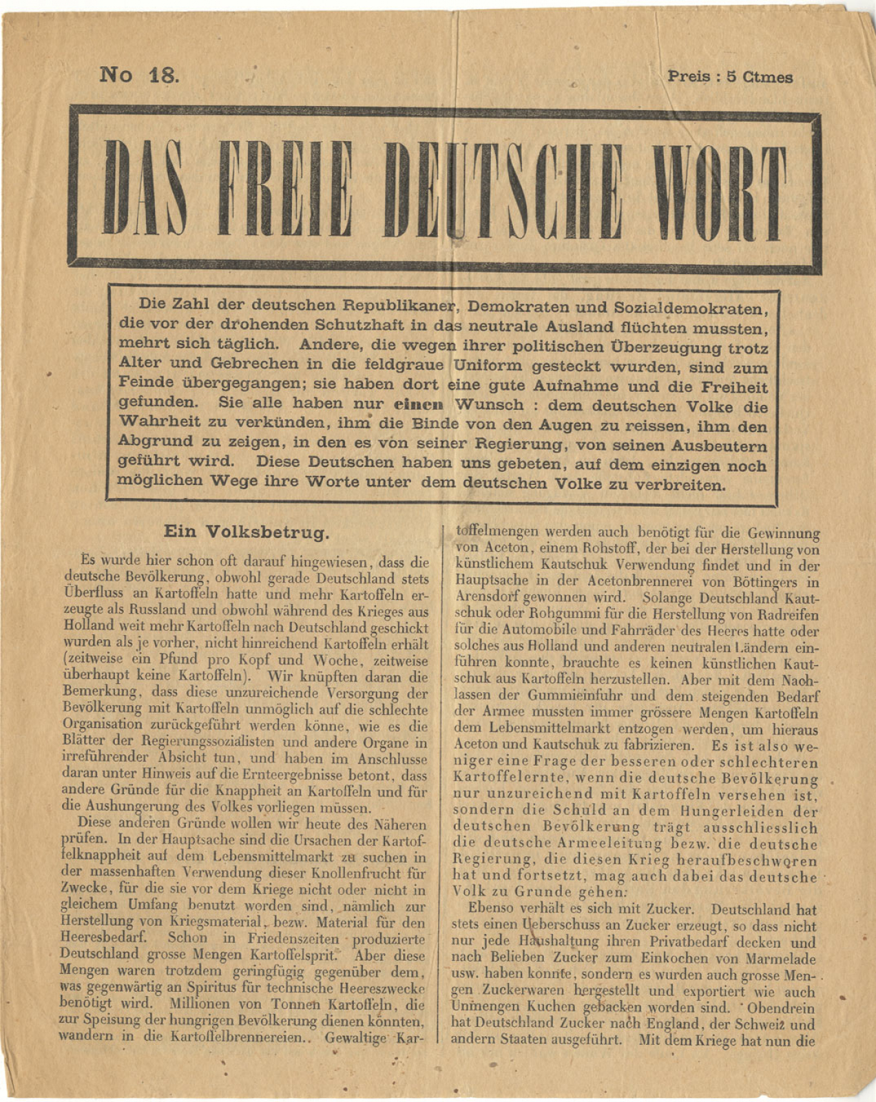 Das freie deutsche Wort, No. 18, französisches Flugblatt / Feindpropganda aus dem ersten Weltkrieg, September 1917