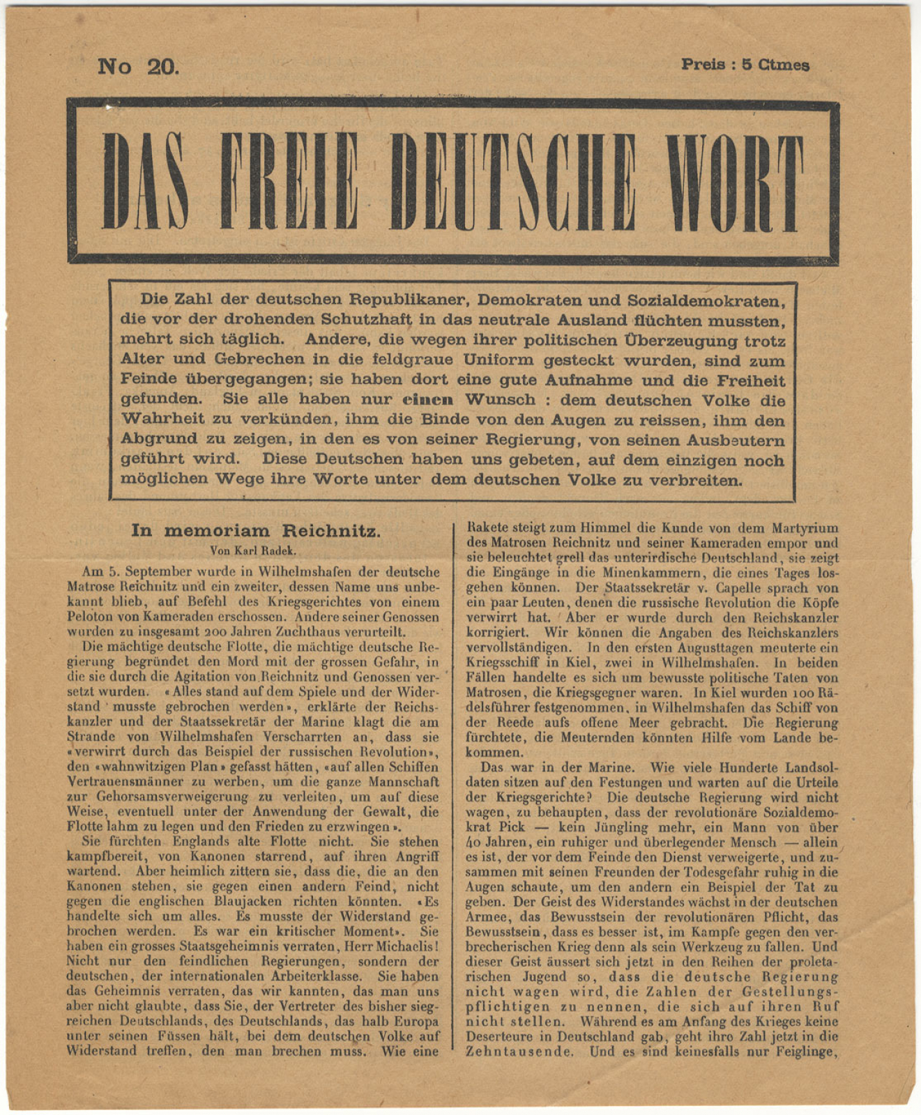 Das freie deutsche Wort, No. 20, französisches Flugblatt / Feindpropganda aus dem ersten Weltkrieg, Dezember 1917