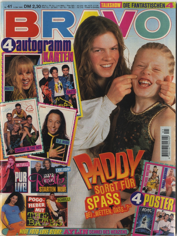 Bravo, 1995 Nr. 41, Pamela Anderson Poster, AC/DC, Outhere Brothers, East 17, Kellys, Pur, Roxette, Fantastischen 4, The Bates, Iron Maiden, Silverchair, u.a.
